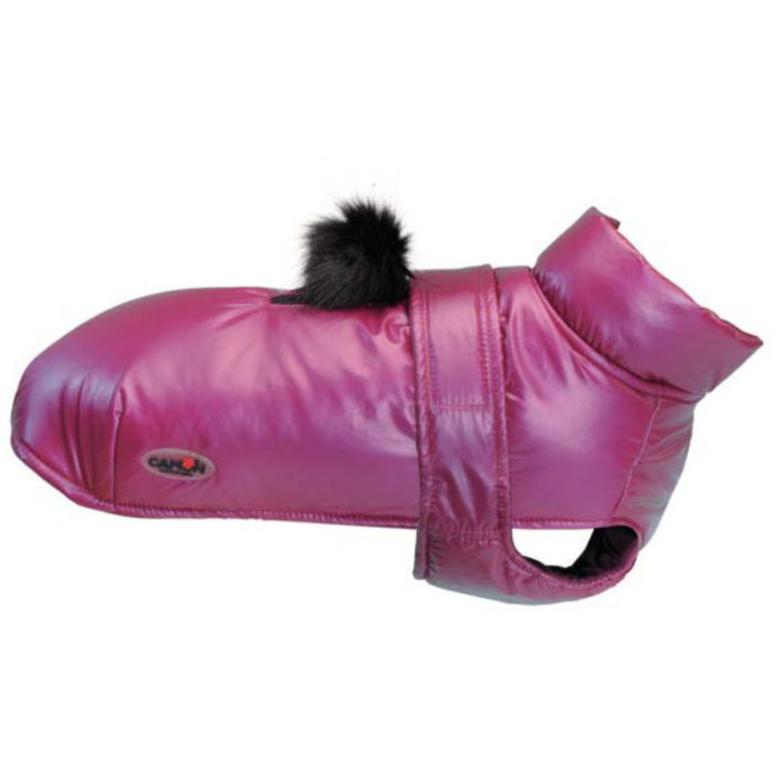 Il vivace colore fuxia e il dettaglio della chiusura del collo con strap conferiscono un look moderno e alla moda. La presenza di una cerniera sul dorso, arricchita da un grazioso pon pon nero, aggiunge un tocco di glamour.