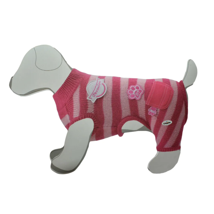 Camon Maglioncino cani modello Priscilla, con righe rosa e rosse , disponibile nella misurazione di 27 cm.