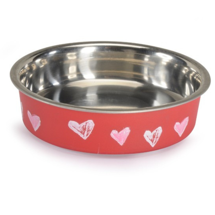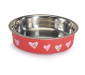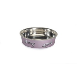 Ciotole in acciaio rivestito in plastica, dotate di anello antiscivolo alla base per una migliore stabilità durante l'utilizzo.