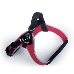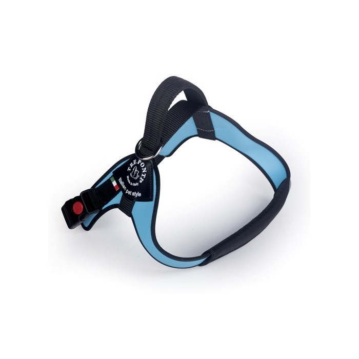 L'imbottitura frontale confortevole e il sottopancia regolabile garantiscono un comfort ottimale. Con la chiusura laterale dotata di fibbia acetalica e bottone di sicurezza, insieme all'anello mobile sulla maniglia che riduce le tensioni al braccio, le passeggiate diventano un'esperienza tranquilla. La maniglia posta a 45° facilita l'arresto del pet senza strappi inutili, assicurando un accompagnamento agevole durante le passeggiate