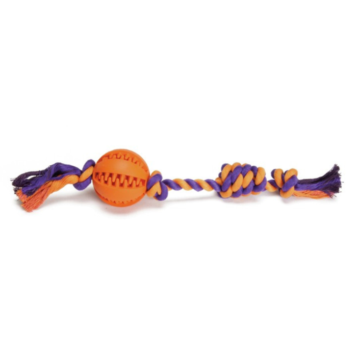 Questi giochi, robusti e resistenti, faranno la felicità del tuo quattrozampe che potrà divertirsi con questo passatempo costituito dalla riproduzione di un osso grazie al cotone intrecciato e da una pallina in gomma al centro, la cui forma aiuterà anche la pulizia dei denti dell'animale.