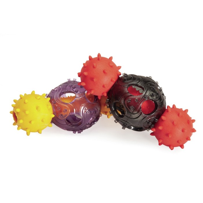 Divertente gioco in Tpr per cani a forma di manubrio e con palla e sonaglio.