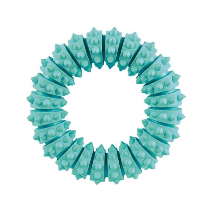 Gioco Trixie Denta Fun Anello, per cani con desiderio di rosicchiare, texture e forma speciali che massaggiano le gengive, supporta l'igiene orale in gomma naturale, al gusto di menta.