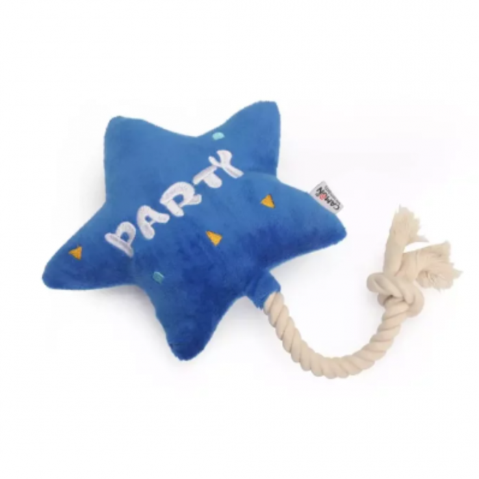 Camon gioco dal nome Stella "Happy Birthday" in poliestere con inserto in corda e squeaker.