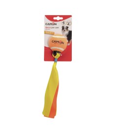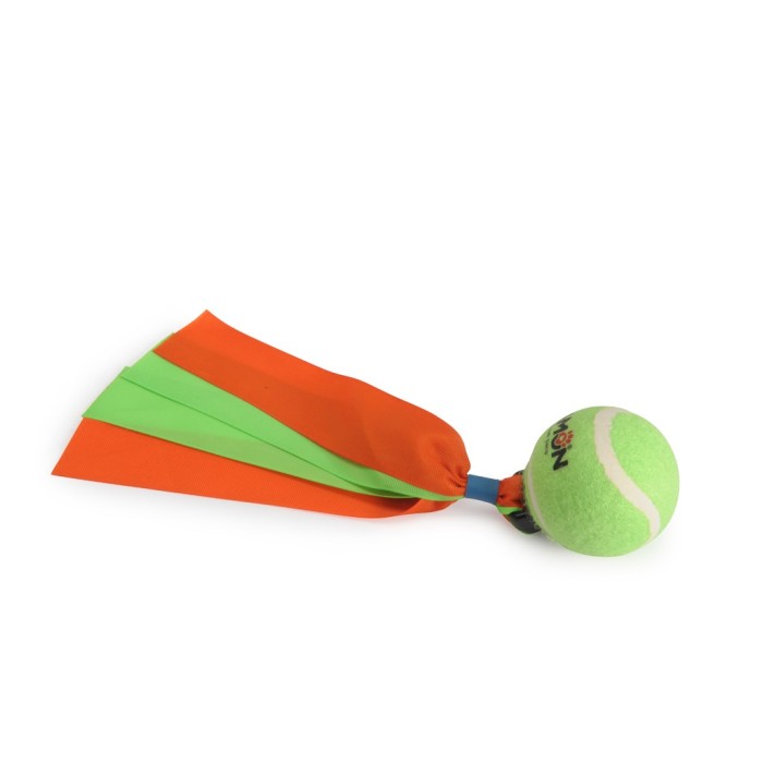 Divertente e colorato gioco per cani costituito da una palla da tennis con un nastro, dotata di squeaker interno.