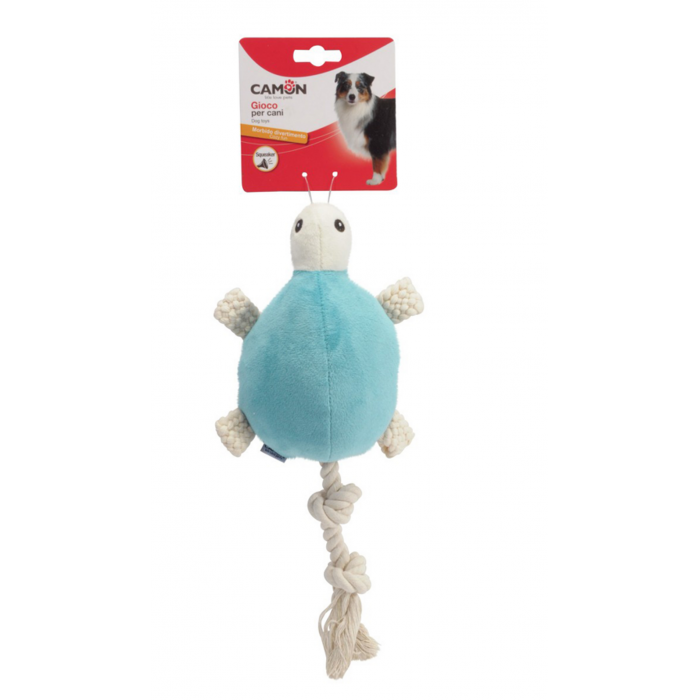 Camon gioco per cani a forma peluche tartaruga con squeaker e corda.