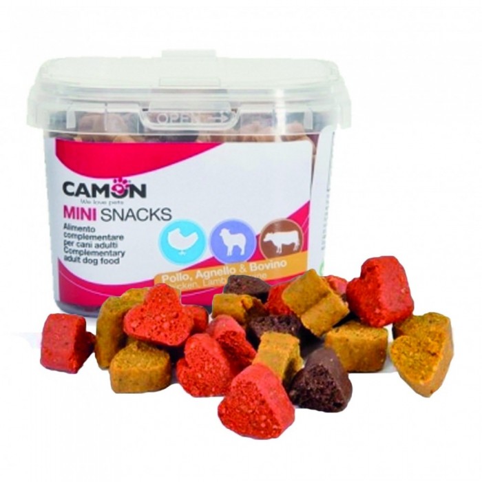 Uno spuntino ideale anche come ricompensa per gli amici quattrozampe: questi snack, a base di pollo e manzo e a forma di piccoli cuori, sono complementari alla dieta del vostro cane.