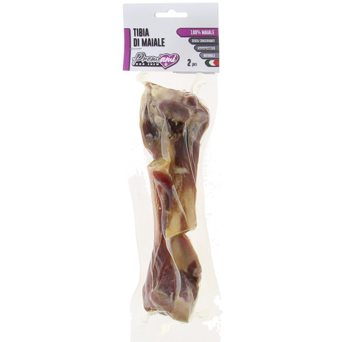 Tibia di suino, ideale come alimento semplice per stimolare la masticazione nei cani adulti.