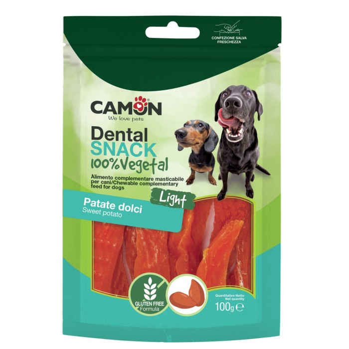 Deliziosi snack 100% vegetali con patata dolce, contenuti in una comoda confezione con chiusura salvafreschezza.