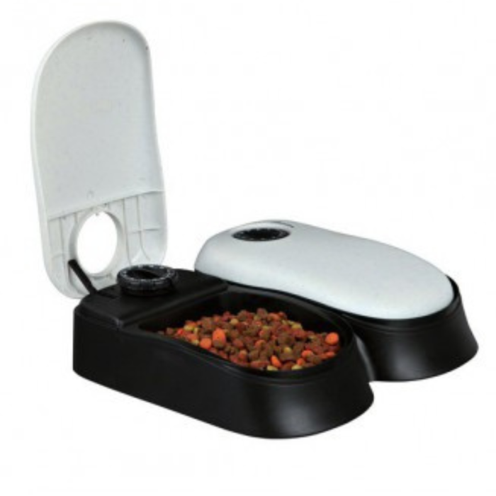 Trixie Distributore Automatico a due compartimenti per distribuire il doppio del cibo.