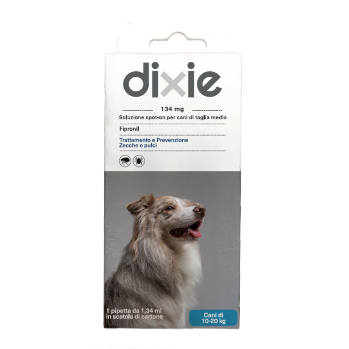DIXIE FIPRONIL 1,34 ml è formulato per trattamento e prevenzione contro la parassitosi esterna dei cani di taglia media.Elimina pulci e zecche e previene nuove reinfestazioni per settimane in modo efficiente grazie alla potenza della molecola Fipronil.