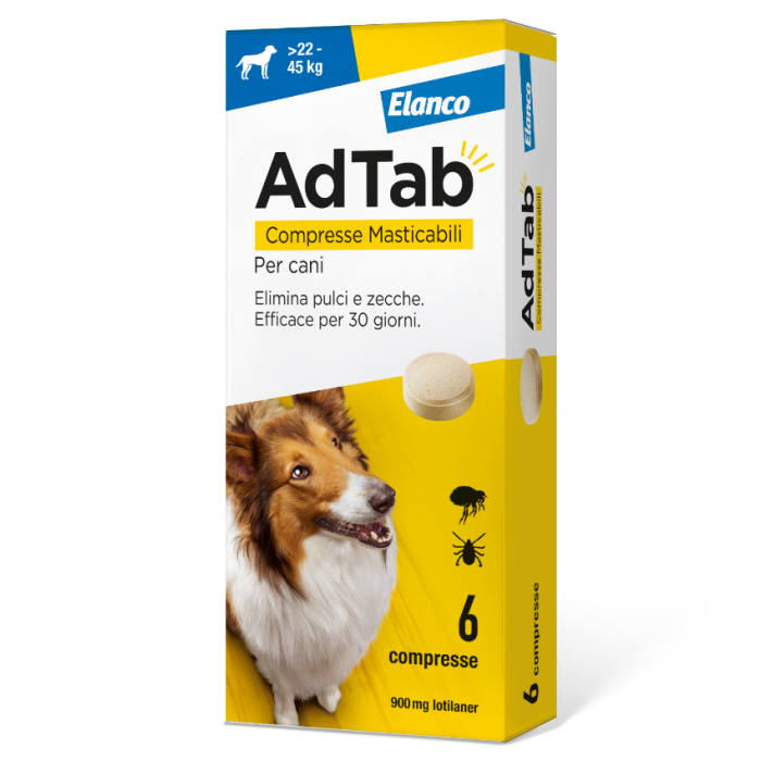 Elanco Adtab - Antiparassitario 6 Compresse Masticabili Per Cani 22 Kg - 45 Kg