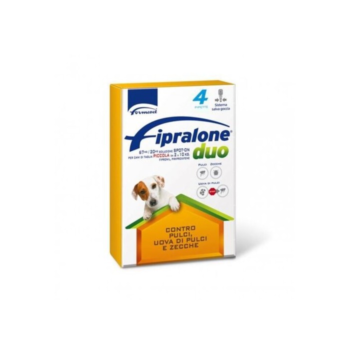 Fipralone Duo Cane 2/10 Kg è un antiparassitario in pipette per cani di piccola taglia, formulato per il trattamento e la prevenzione delle infestazioni da pulci e zecche.
