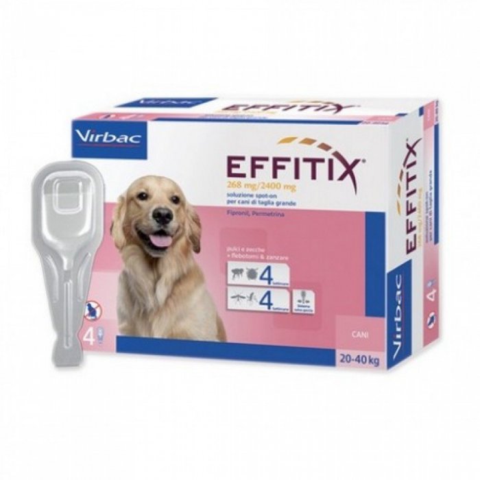 Virbac effitix 4 pipette cani 20-40 kg, per il trattamento e la prevenzione delle infestazioni da pulci zanzare e flebotomi.