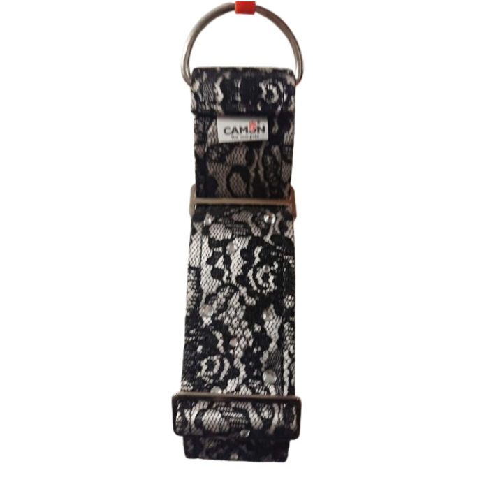 Regolabile con lacci e cinghia in strass. Molto flessibile, rivestimento similpelle. Posiziona attorno alla testa.