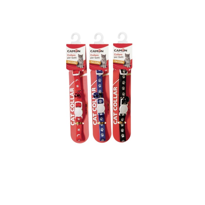 Collare per gatti in nastro di nylon molto resistente con disegni riflettenti per una maggiore sicurezza nelle ore notturne.