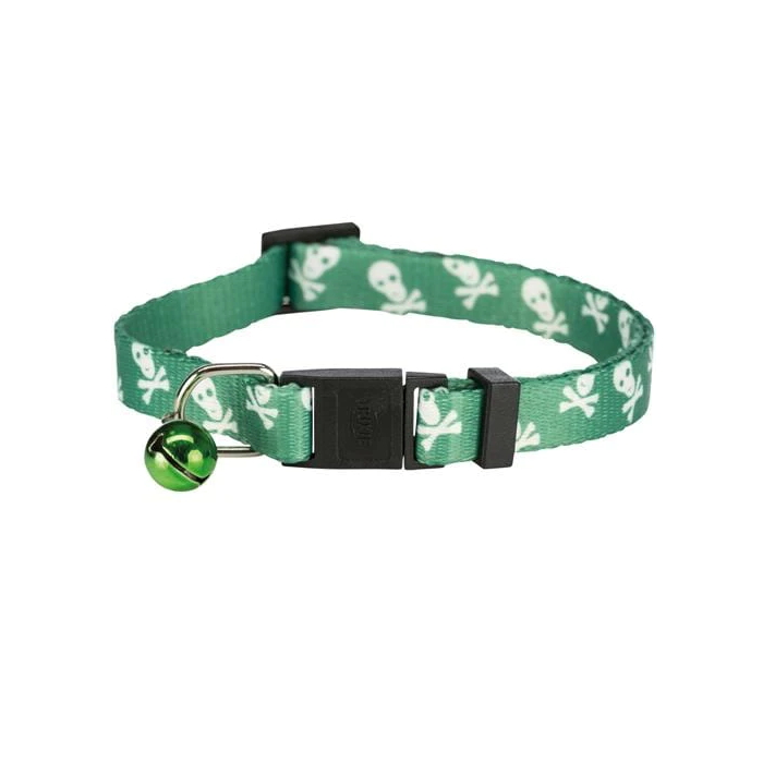 Collare rock con teschi e campanello per gattini in nylon- Trixie.