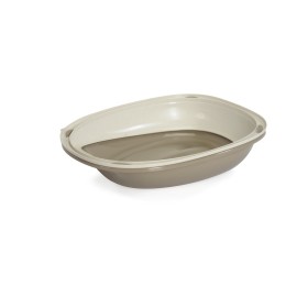 La bacinella per lettiera con un design innovativo presenta bordi alti e arrotondati che impediscono fuoriuscite di sabbia e liquidi, mantenendo puliti pavimenti e pareti. Realizzata in plastica lucida per una facile pulizia.