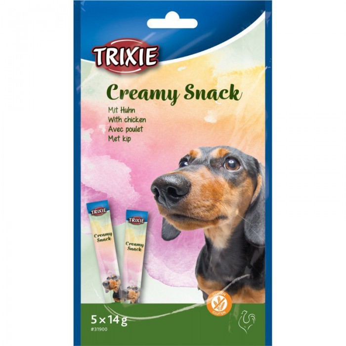 Trixie Snack cremoso con pollo, 5 × 14 g, disponibile nella confezione da 6 pezzi.